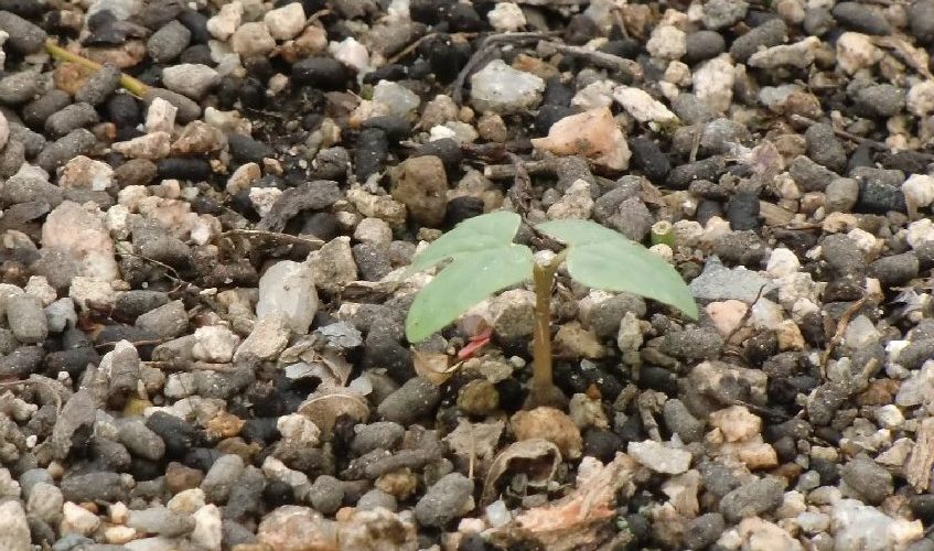 でも、モミジの木の根の近くに、双葉が出ていました。