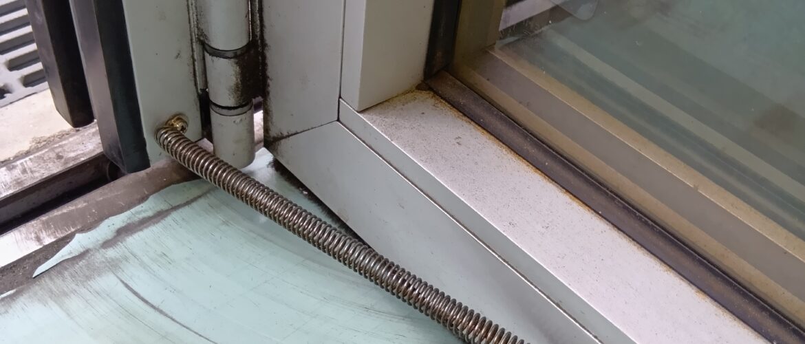 さて、こちらは中庭に通じるスライドドアです。最近このドア、開けるときは問題ないのですが