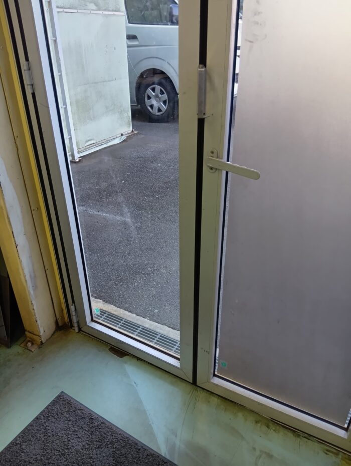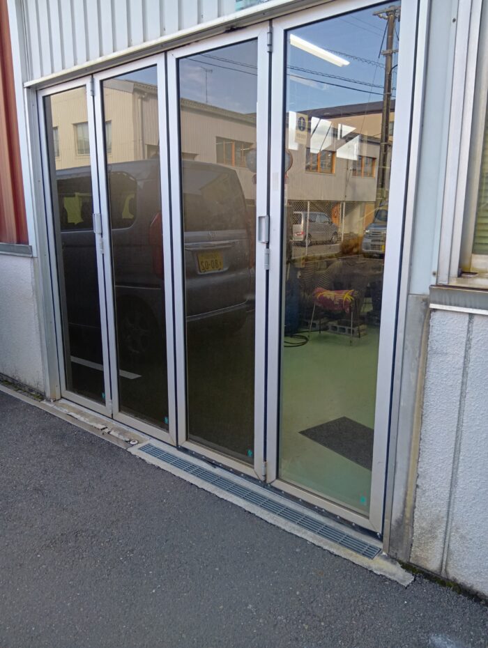 今回は、工場から中庭へ抜けるスライドドアです。