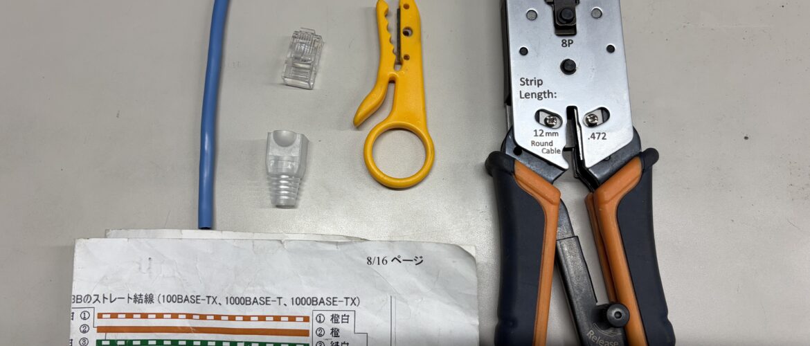 今はネットワーク線単体を100mぐらいで買って、切って端子処理をして必要な長さぴったりで施工しています。